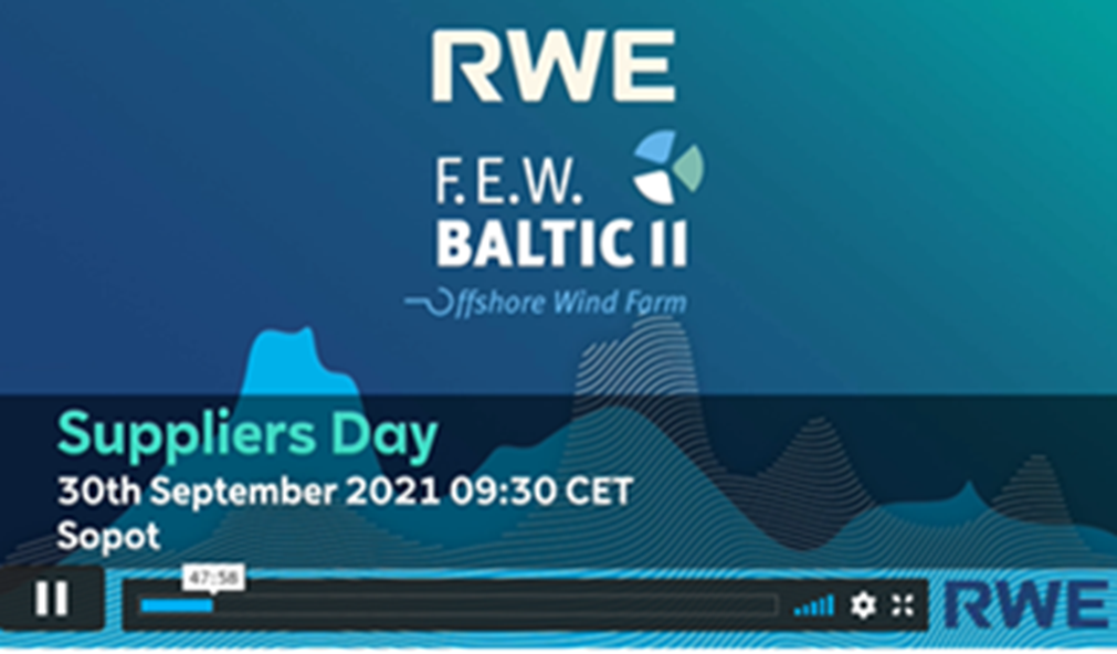 Drugi dialog z dostawcami odbył się 12 września 2021 roku w Sopocie. Wydarzenie zgromadziło liczne grono przedsiębiorców zainteresowanych udziałem w łańcuchu dostaw RWE. W spotkaniu wzięli udział przedstawiciele m.in. przemysłu stoczniowego, logistyki, usług morskich, portów i przemysłu ciężkiego. Celem drugiego spotkania było zapoznanie dostawców ze szczegółami prac poszczególnych pakietów realizowanych w ramach projektu F.E.W. Baltic II. Na spotkaniu przedstawiono szczegóły dotyczące następujących pakietów projektu: fundamenty, elektryka, turbiny, logistyka, pozwolenia i decyzje oraz O&M.